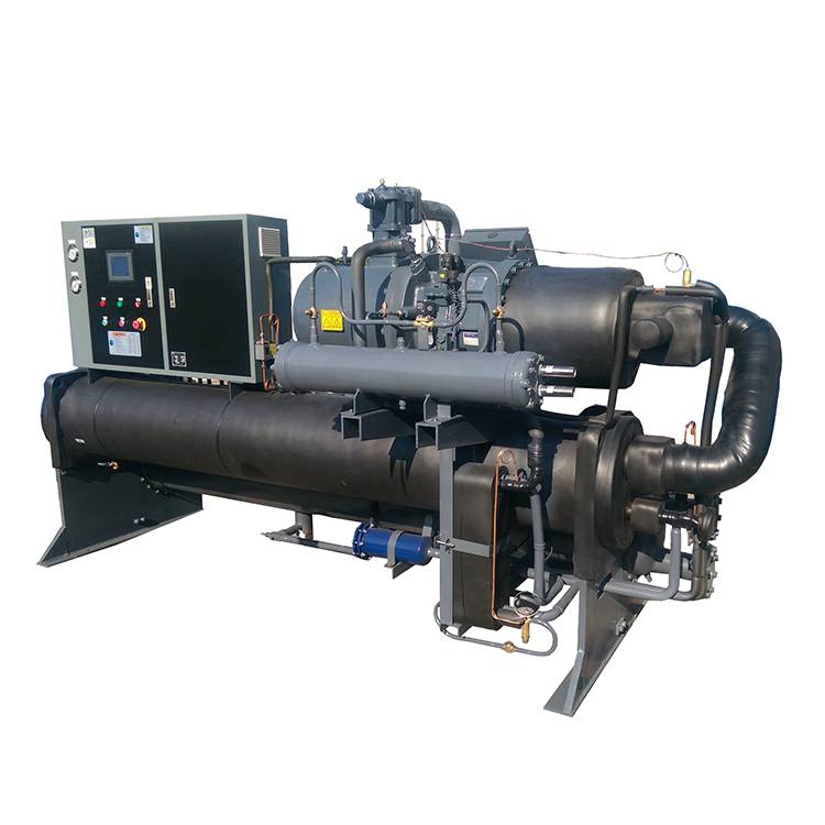 采用开放式设计,无外箱体、机组可安放于生产车间内或车间外面,适合于环境温度较高的环境中;受环境温度影响较小、安装使用时需配置冷却塔304不锈钢保温水箱及循环水泵。